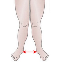 در حالت ایستاده که بچه مچ پاهای خود را به هم چسبانده بین زانو های وی فاصله زیادی باقی می ماند
